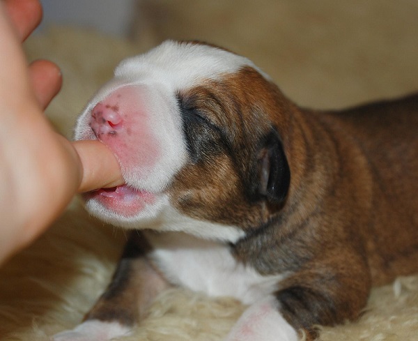 Ein geschultes „Züchterauge“ kann bereits bei ein- bis zweiwöchigen Welpen erkennen, ob eventuell Erkrankungen oder Anomalien bestehen. Hier sollte zeitnah mit Physio begonnen werden, damit einer Schonhaltung vorgebeugt und Bewegungsfehler vermieden werden können.
